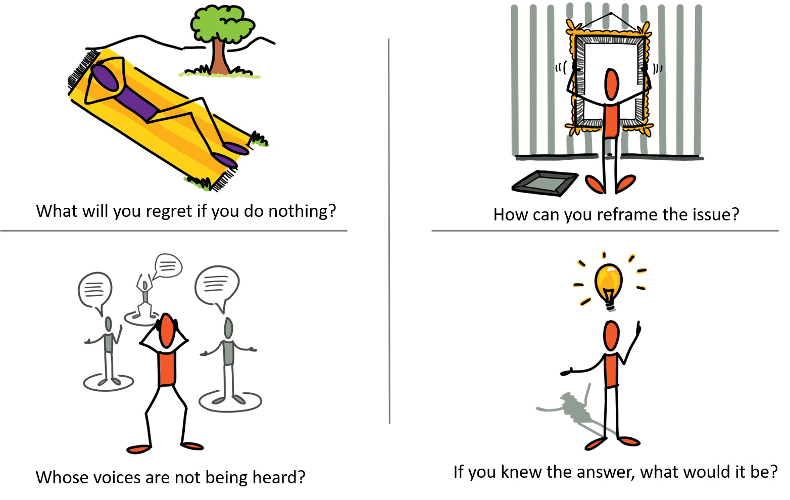 Asking questions is a powerful way to create new insights and unearth limiting assumptions. Here are a couple of my favourites.